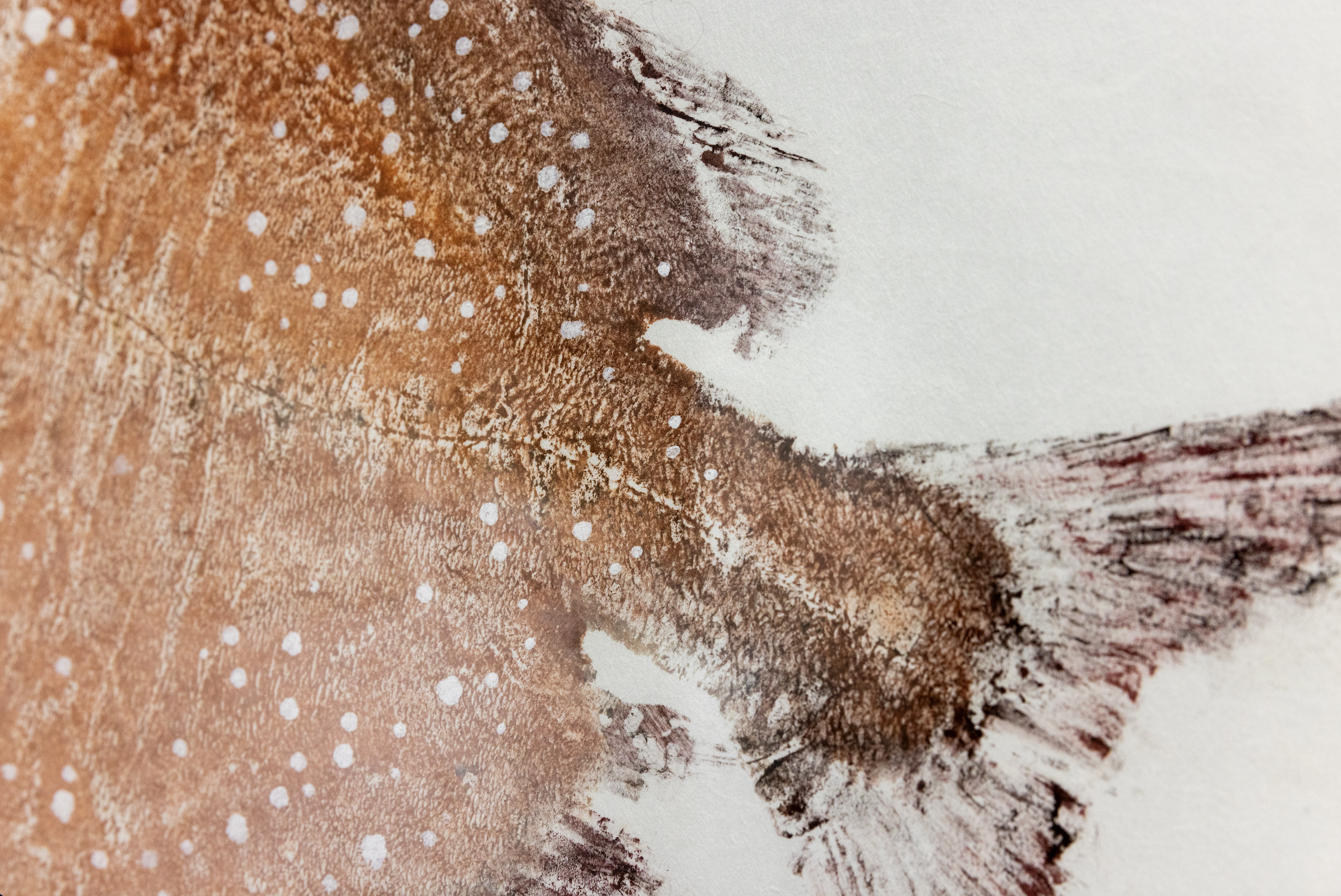 Using traditional sumi ink and delicate washi paper, the fish itself becomes the printing plate. Each specimen is carefully inked by hand and gently pressed onto paper, creating a life-sized, intricately detailed impression. Every scale, fin, and contour is transferred with remarkable fidelity - preserving not only the anatomical precision of the fish, but its unique character and presence.